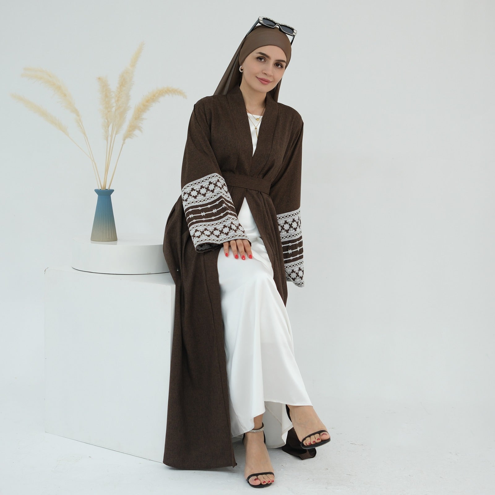 Espressobruin Geborduurde Kimono Abaya Jurk
