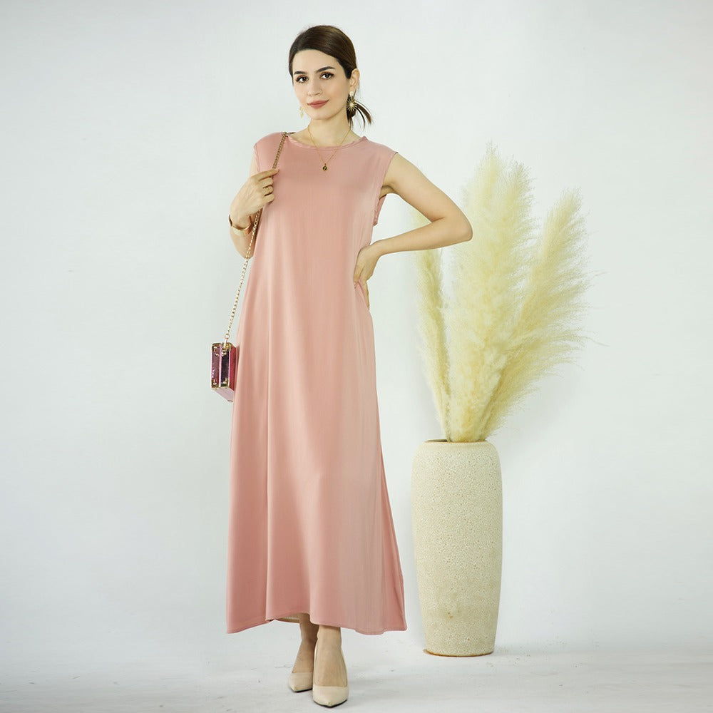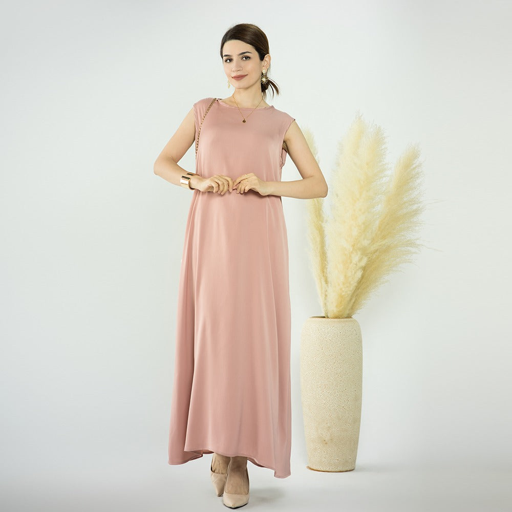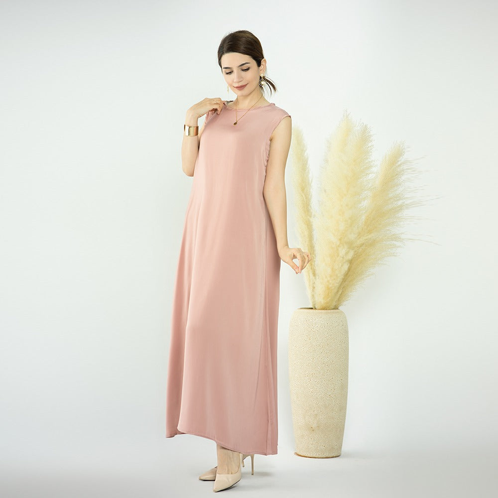 Poederroze Zijdezachte Satijn Mouwloze Jurk