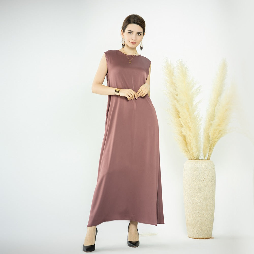Rozetaupe Zijdezachte Satijn Mouwloze Jurk